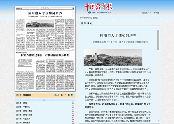 《中国教育报》刊登bat365应用型人才培养模式的创新与实践