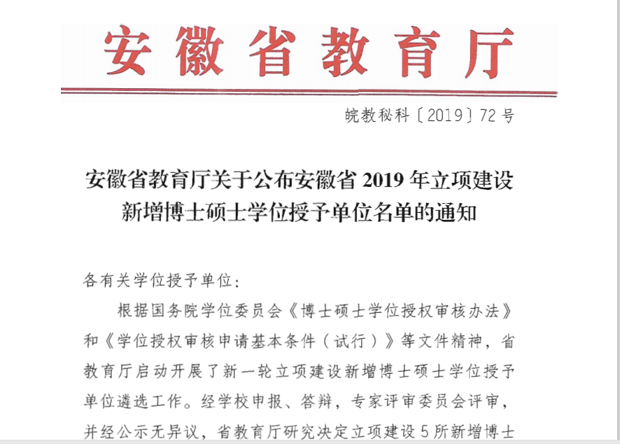 bat365在线中国官网登录入口成功获批安徽省新增硕士学位授予立项建设单位