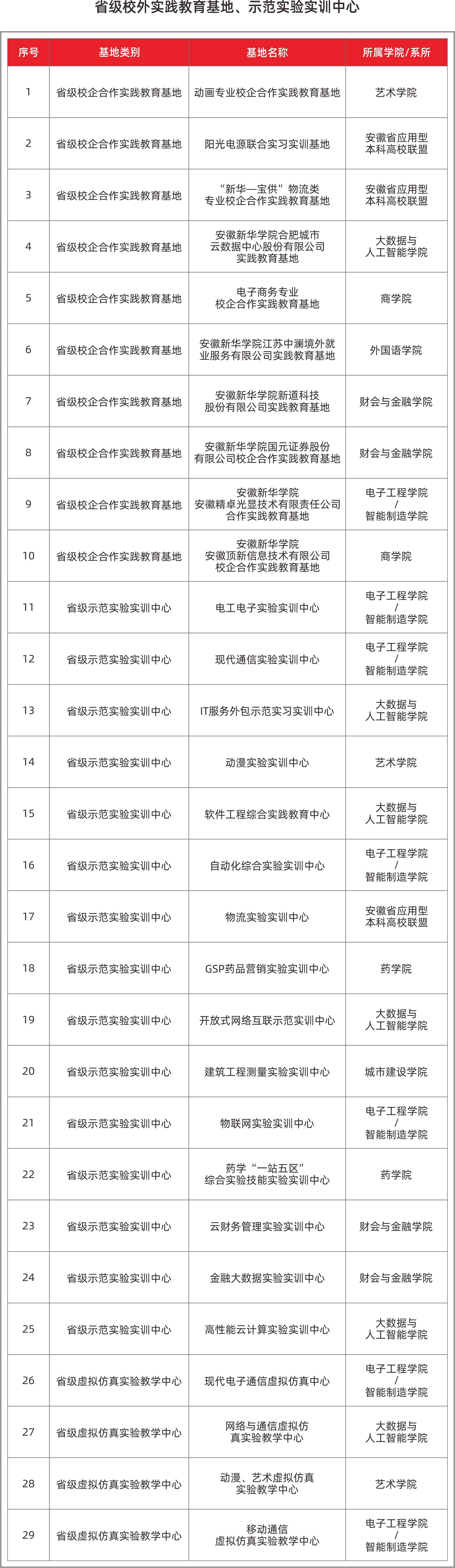 学校建有国家级校外实践教育基地 1 个,省级校外实践教育基地、示范实验实训中心 29 个,构建以国家级基地为引领、省级平台为主体,覆盖多学科领域、多层次衔接的实践教学体系,为应用型人才培养提供了全方位支撑。