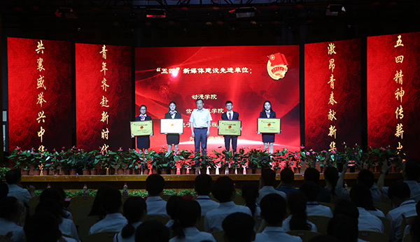 青春的历练、成绩的获得离不开集体的力量,第三篇章中,在座领导为“学科竞赛优秀组织奖”“优秀志愿服务团队”“‘五·四’新媒体建设先进单位”“先进团支部”“先进基层学生会”“‘五·四’红旗团总支/团工委”“‘五·四’特别贡献奖”等获奖代表颁奖,勉励大家在团队中积聚力量,在组织中感受成长。