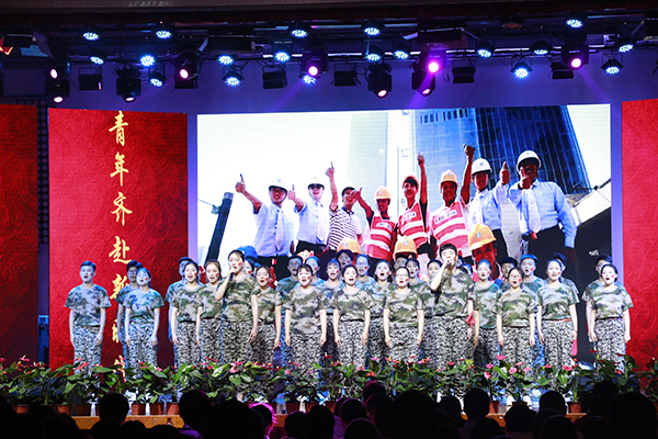 “今天,一个大写的中国,让人读得光明、读得酣畅;今天,一个腾飞的中国,更让人读得生动、读得自豪!”随后的诗歌朗诵《青春中国》澎湃激昂,字里行间充满着对祖国的热爱,让在场观众热血沸腾。