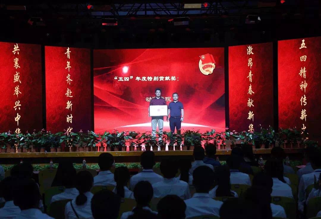 2017年,动漫学院在“挑战杯”学术科技作品竞赛、“中国大学生自强之星”等多项比赛、评选中屡次获得突破性成绩,荣获“‘五四’特别贡献奖”,新华集团总裁张明为动漫学院颁奖。