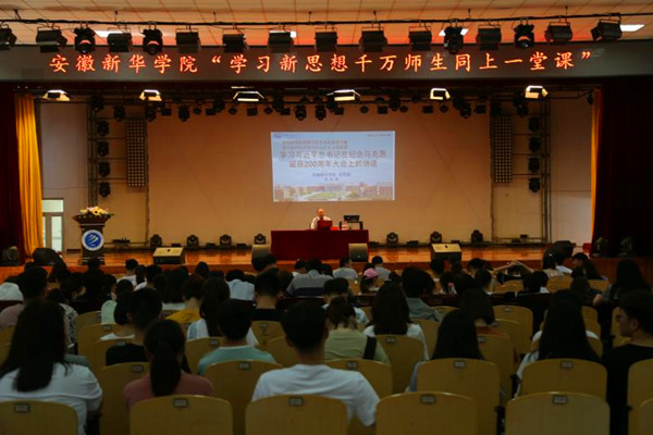 本网讯(通讯员:代长彬)季夏蜀山、郁郁苍苍,六月新华、葱葱茏茏。为深入学习贯彻落实习近平总书记在北京大学师生座谈会和纪念马克思诞辰200周年大会上重要讲话精神,根据教育部办公厅关于组织开展“学习新思想千万师生同上一堂课”的通知以及中共安徽省教育工作委员会关于组织开展“学习新思想千万师生同上一堂课活动”的通知要求,6月13日,bat365思政部举办“学习新思想千万师生同上一堂课”活动,本次活动由中共bat365在线中国官网登录入口思政部直属支部承办。