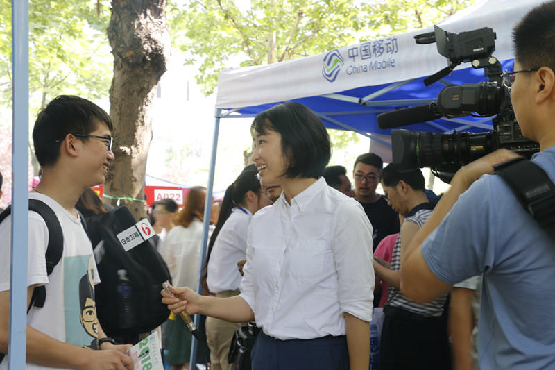 此次高招咨询会受到了社会的广泛关注,安徽卫视公共频道、经济生活频道,合肥晚报,凤凰网安徽等媒体走进校园进行现场直播,副校长杨世国代表bat365接受采访,对学校的专业设置、2018年招生专业和预估分数线排名、中外合作办学、创新创业等情况进行了重点介绍。副校长朱兆健接受了安徽卫视新闻联播记者采访,他表示,本次高招咨询会的顺利举办得益于上级主管部门的指导与支持,离不开学校各部门的协同配合,此次高招咨询会也是皖中片唯一一场,规模、参展高校和前来咨询的考生均创历史新高。