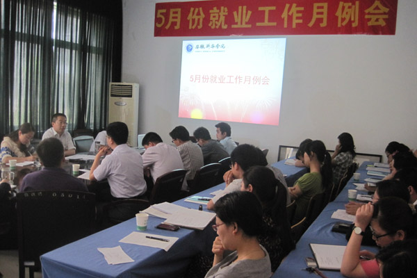 各二级学院首先分别就4月份就业工作内容及5月份就业工作计划作了交流汇报。李洁简要回顾了4月份招就办就业工作,通报了各二级学院2012届毕业生4月份就业率、考研专升本录取情况、就业宣传报道统计、二级学院开展校企合作情况等事项,部署安排了五月份就业重点工作。随后,李洁对12届毕业生就业证明材料核查情况作了通报,指出在核查中出现的常见问题,再一次强调了规范填写的具体要求。希望各二级学院在后续工作中认真做好就业证明材料的催缴及规范填写工作。