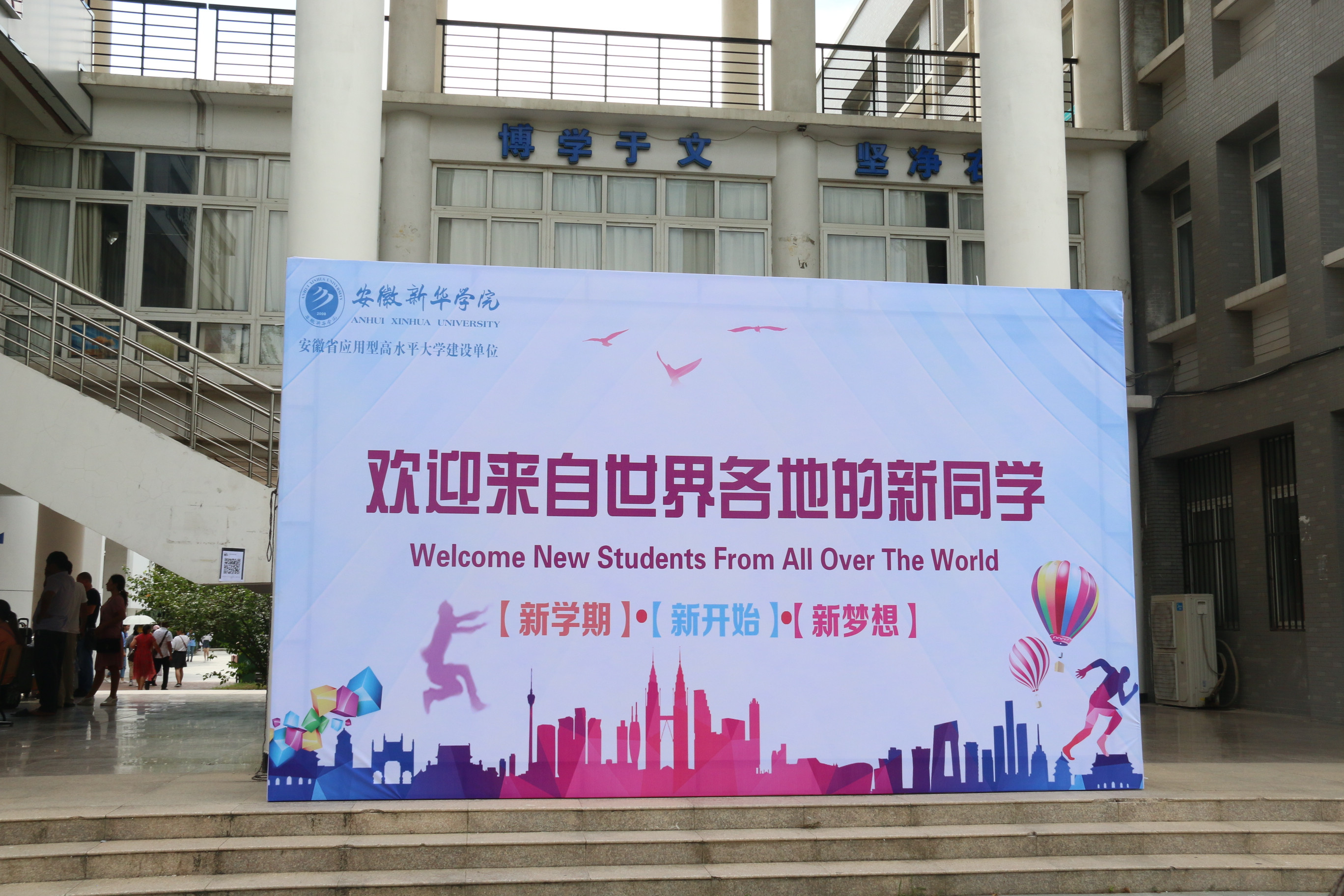 8月31日,距离正式报道还有一天的时间,学校及各二级学院早已做好了充分的准备,迎接新生的到来。校园北大门的彩虹门绚丽夺目,图书馆南广场上“爱上新华 2018”的标志,吸引了不少家长和新生驻足观赏。