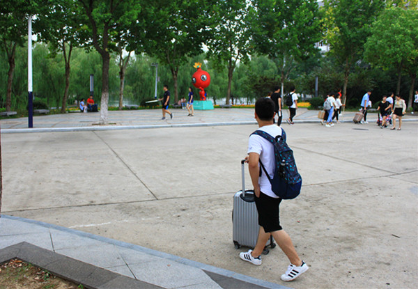 9月1日一早,报考bat365国际教育学院经济与金融专业的王陶同学,就已经托着重重地行李箱来到了华园,对于他来说这也不是第一次来华园了,开学几天前,他便已经熟悉了学校旁边的各路公交车,并来过学校。他说:“刚进华园就被学校的绿化美景所震惊,处处充满生机,与新生报到的气氛十分相宜,学姐学长们也十分热情,从校门口开始就有学校的志愿者迎接。”