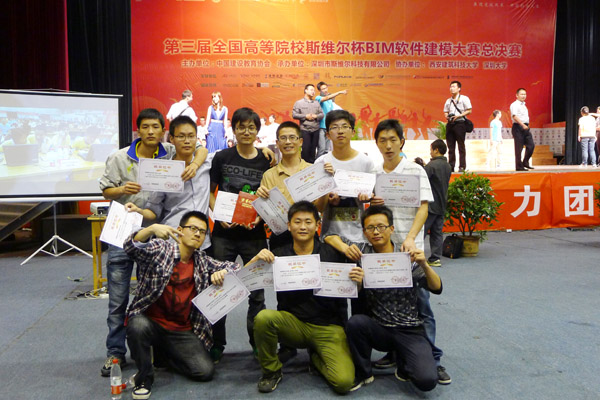 5月11日,第三届全国高校斯维尔杯BIM软件建筑信息模型大赛在西安建筑科技大学举行,土木与环境工程学院代表bat365派出“领航者”和“建天筑语”两支代表队参赛,比赛结果于5月13日晚上揭晓,bat365代表队从全国100多所高校的160多支队伍脱颖而出,两支队伍分别荣获得团队“全能三等奖”,同时“领航者“队荣获“专项一、二等奖”,“建天筑语”队荣获“专项三等奖”。
