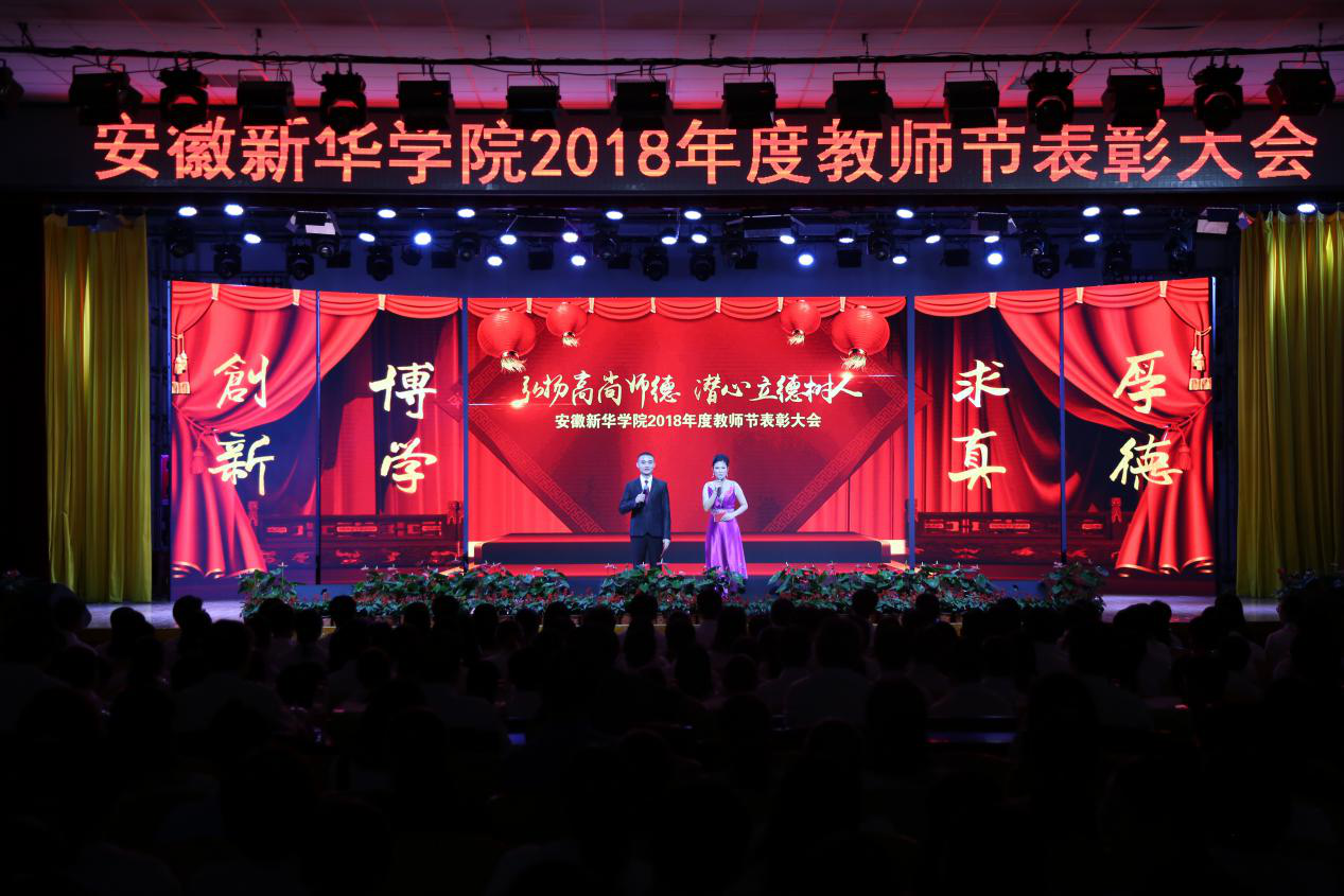 副校长朱兆健宣读了教师节贺信,代表集团、学校向辛勤耕耘在新华教育战线上的广大教职员工致以节日的祝贺和亲切的慰问,并向关心、支持新华教育事业发展的家人及社会各界朋友致以诚挚的谢意。“十八年栉风沐雨,十八年奋勇前行。bat365在线中国官网登录入口以‘一流大学,百年新华’的教育情怀,坚持‘教育为民、育人为本、服务社会’的办学宗旨,坚持应用型定位和国际化的发展方向,内涵建设不断加强,办学水平不断提高……”表彰大会在恢弘大气的宣传片中拉开帷幕。