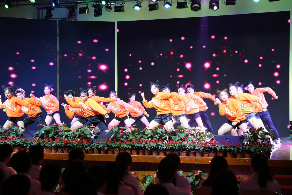 随后,同学们登上舞台,快速流畅的舞步、跃动朝气的身姿、伴以节奏多变的电音,将街舞的活力热情演绎得淋漓尽致;优美曼妙的拉丁舞,融合了体育的活力和舞蹈的柔美,学生们时而轻舒云手,时而抬腕低眉,用歌舞艺术表达对老师们的感恩之情。