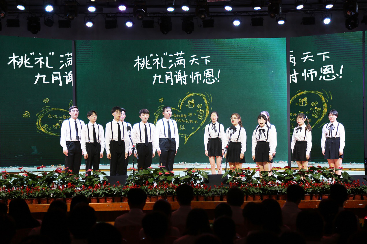 “静静的深夜群星在闪耀,老师的房间彻夜明亮,每当我轻轻走过您窗前,明亮的灯光照耀我心房……”在小合唱《每当我走过老师窗前》的优美旋律中结束了大会的第一篇章。