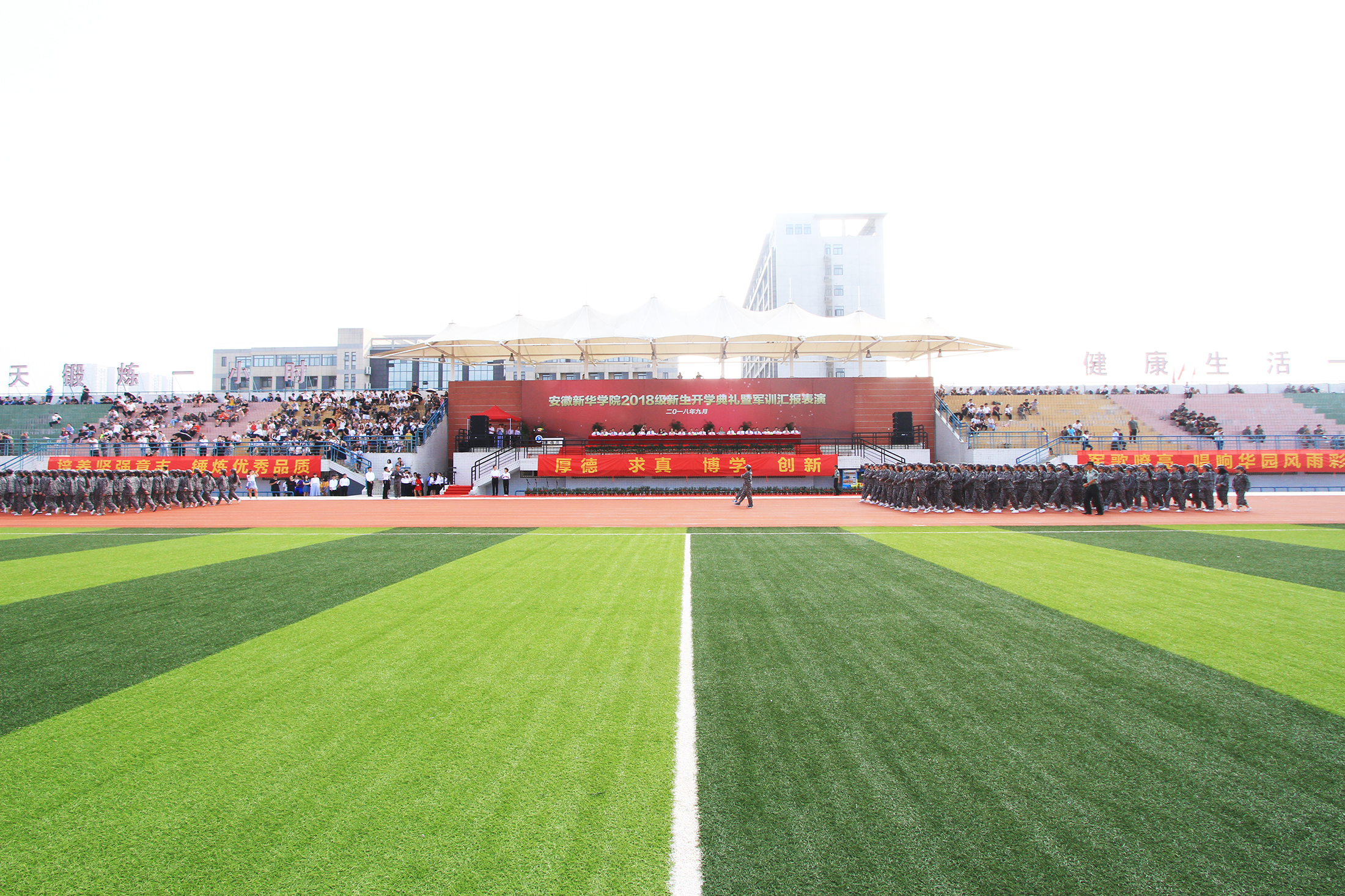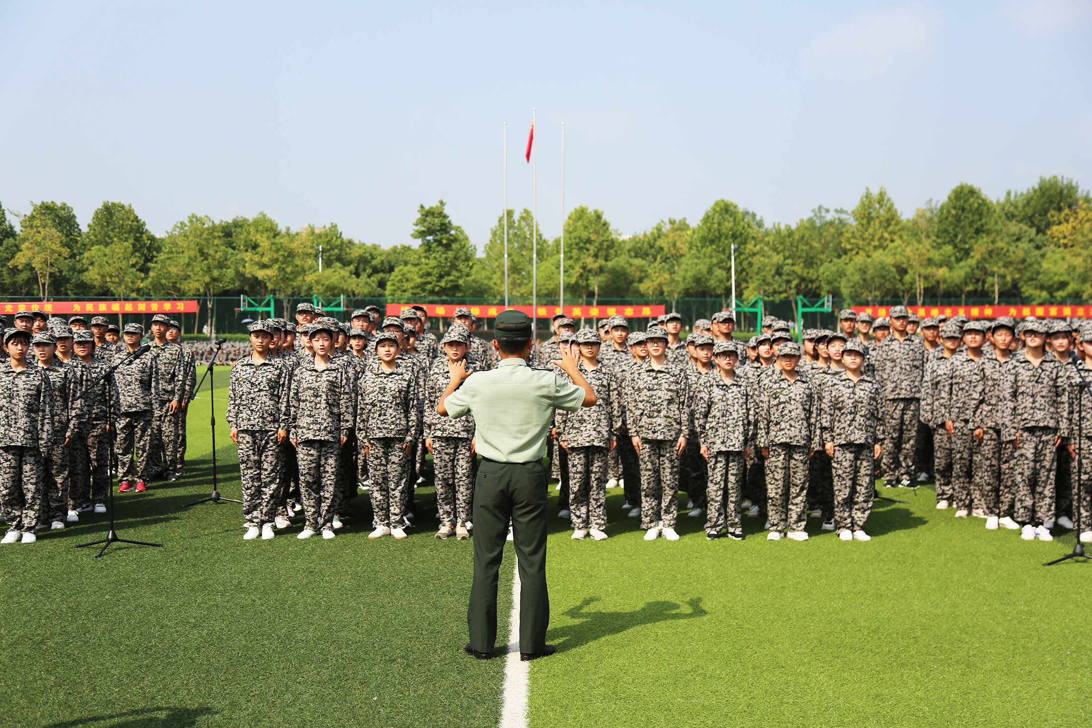 十天的艰苦训练,十天的朝夕相处,十天的汗水与骄阳,都会成为大家记忆篇章里最美好的一页!美丽的华园不仅是学习专业知识的殿堂,更是每一个华园人成就美好未来的精神家园。希望大家秉承“厚德、求真、博学、创新”的校训精神,以高昂的斗志、饱满的热情投入到学习生活中,在华园过得充实、快乐!