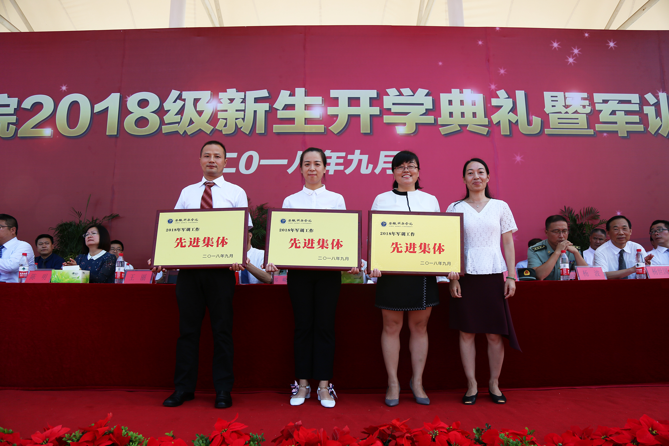 主席台领导为“优秀内务寝室”“优秀学员”“军训工作先进个人”“军训优秀教官”“军训工作优秀营长”“军训工作先进集体”获奖人员颁奖。