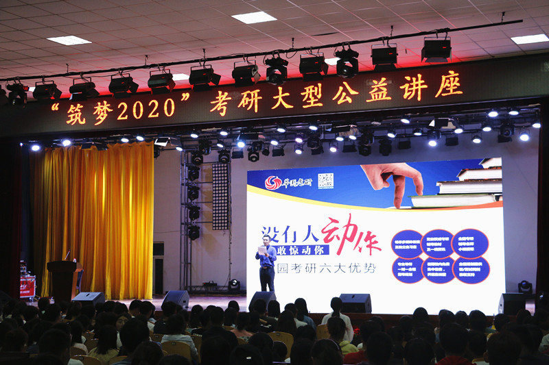 讲座开始之前,陈义盛致辞,他代表华园考研辅导中心对广大学子的到来表示热烈的欢迎,随后介绍了华园考研辅导中心的优势,并表示学校会对考研学生在学习环境以及寒暑假生活方面提供大力支持。