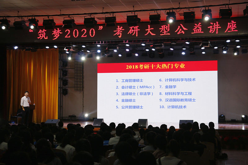 此次讲座的主讲人为考研辅导专家朱驰洲,他从最新考研考情分析、考研关键流程精析、考研全程复习规划三个方面进行了讲解。他在提醒广大学子重点关注考研初期的注意事项、热门专业、考试流程的同时,就某些典型高校进行了简要介绍。