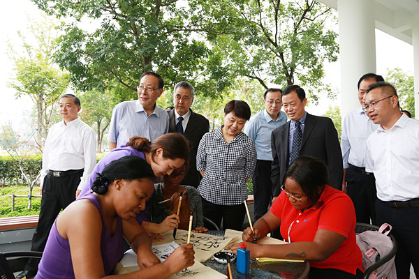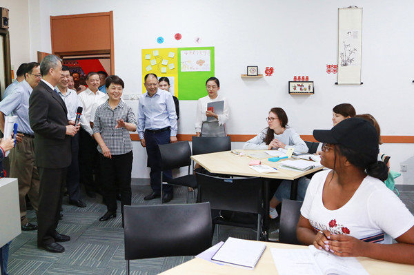 随后,王翠凤来到国际教育学院和留学生事务管理中心,了解了国际教育学院概况、“3+1合作项目”、留学生项目、师资力量及国际化办学理念。询问了外籍教师上课情况、学制、学生出国等情况。期间,王翠凤还与留学生进行了交流,并观看了留学生中国文化体验课。