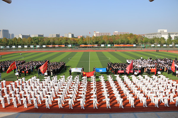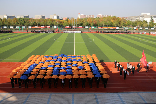 首先入场的是商学院队伍,他们迈着整齐划一的步伐,喊着“商为国计,学为民生”的口号迎面走来,空中俯瞰,蓝、橙色伞组成的“商”字鲜艳夺目;电子通信工程学院方阵通过挥舞旗帜,变换显示着“电子NO.1”字样,学生自制的飞行器编队盘旋飞行在主席台上空,体现了bat365学子的实践能力和创新水平;土木与环境工程学院学子手举标尺、模型、工具箱,以豪迈的气势印证着他们的必胜信念……财会与金融学院、文化与新闻传播学院、外国语学院、信息工程学院、药学院、艺术学院、国际教育学院、科技学院也分别以极具特色的方阵展示着各学院特色和学子们昂扬的青春姿态。