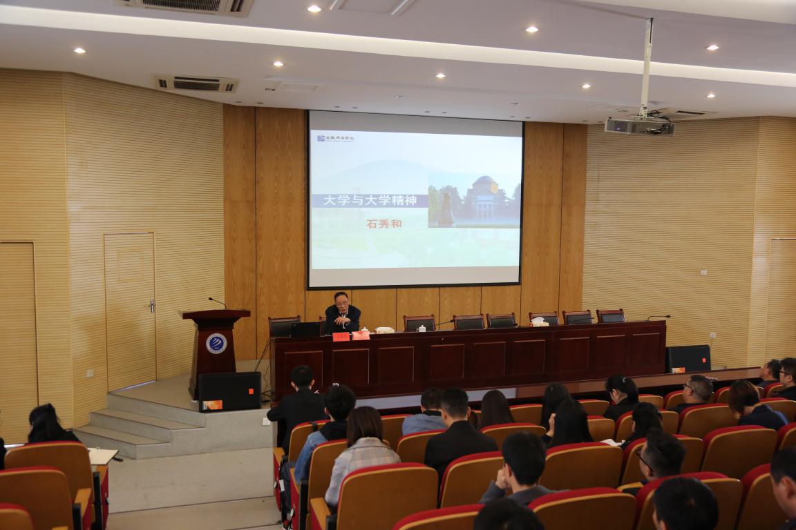 开班仪式后,石秀和作题为《大学与大学精神》的讲座。他旁征博引,深入浅出地讲解了“大学”和“大学精神”的内涵,既有学理的探究,又有历史的回顾,指导新员工用崇高的精神、至善的状态在大学里工作,做一个优秀大学精神的传承者和优秀大学文化的传播者。