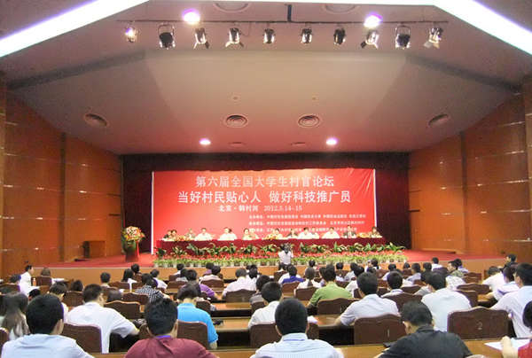 本次论坛以“当好村民贴心人,做好科技推广员”为主题,由中国村社发展促进会、中国农业大学、中国农业出版社、农民日报社联合主办。近100名中央和地方各有关部委领导、专家学者、知名村官、企业家和200余名全国各地的优秀大学生村官代表共聚本次论坛。
