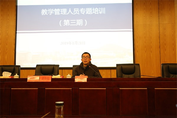 最后,方纯洁作总结讲话。他指出,2019年是学校发展的关键年,教学管理人员作为学校教学工作的中坚力量要主动学习高教领域的新思想新理念,积极承担学校“121工程”建设的新任务,着力提高教育教学改革质量。他强调,各教学单位要找准院系、专业发展定位,明确发展目标,以问题为导向走特色发展之路;教学管理人员对待自己要高标准、严要求,既要有专业深度也要有管理能力,“多用眼、多动手、多动脑、多动腿、多用心”全方位实现自我成长。