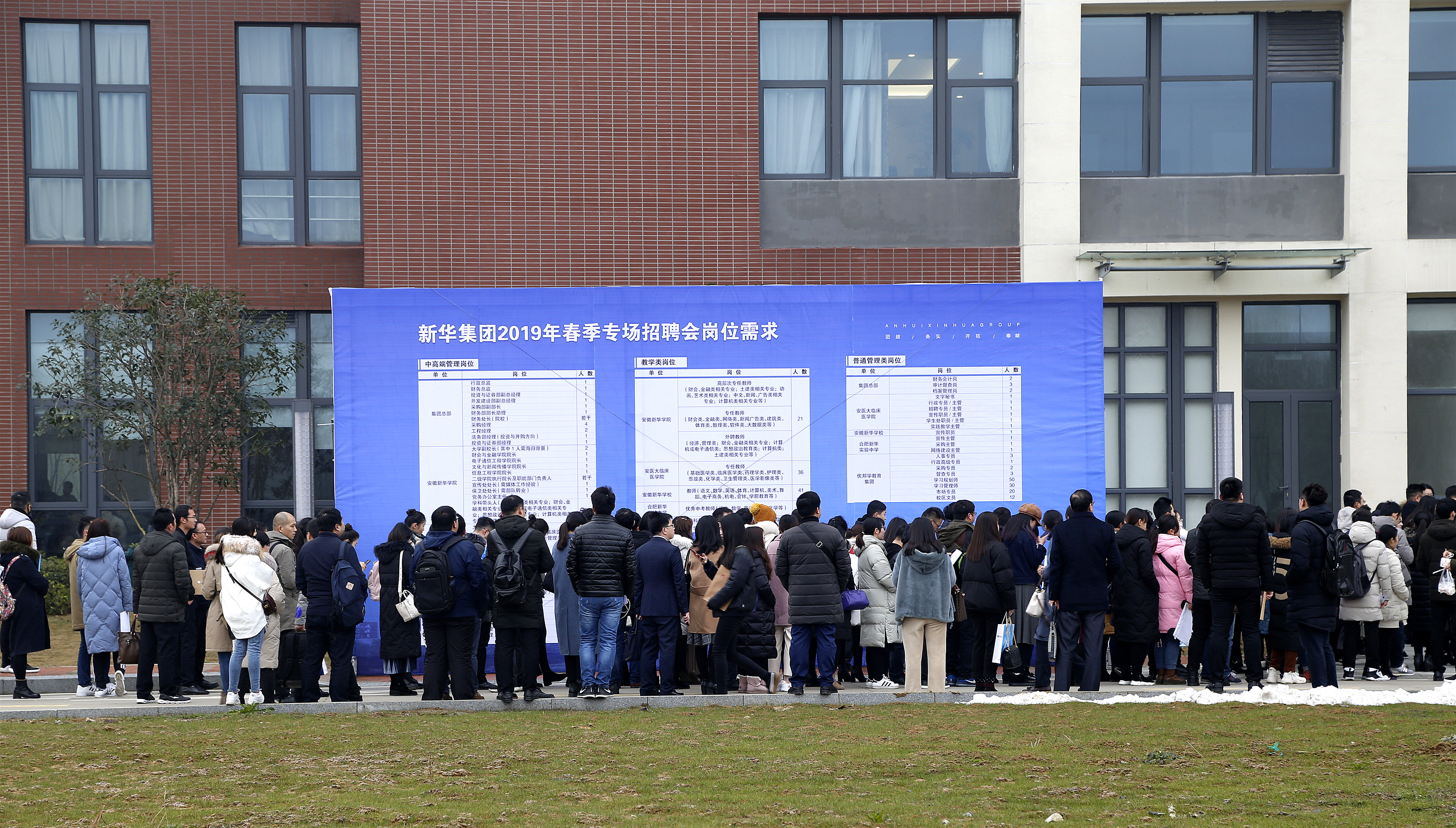 本次招聘会由新华集团主办,bat365在线中国官网登录入口、安徽医科大学临床医学院、安徽新华学校、合肥新华实验中学、优邦学教育集团5家下属单位共同参与,提供了涵盖中高端管理类、行政管理类、教师等300余个岗位,招聘会当天共吸引了1731名求职者。