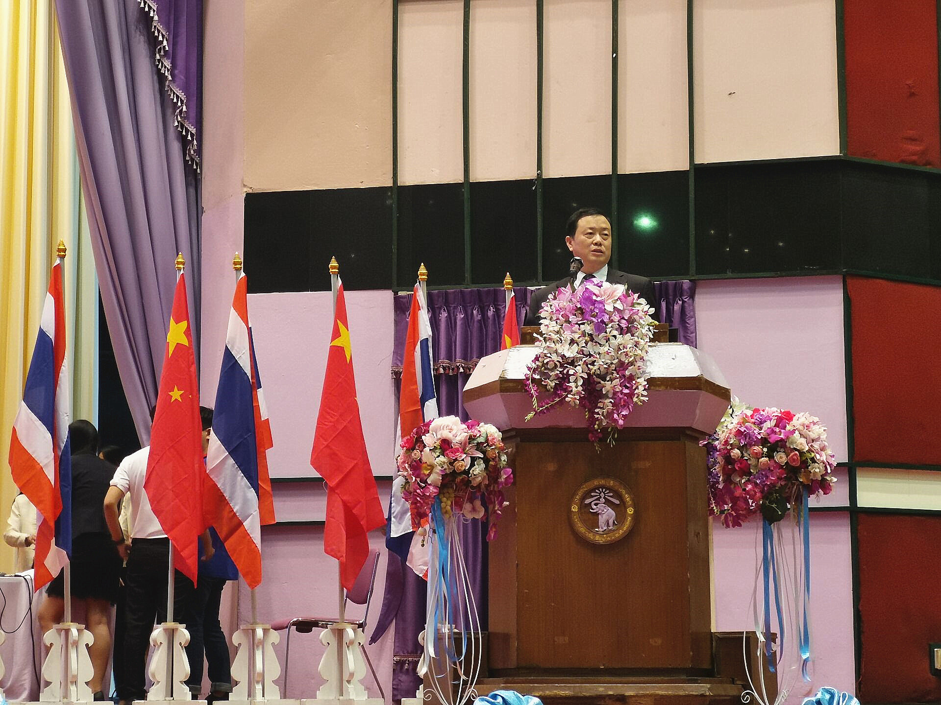 本网讯(通讯员:翟荣兵)3月9至14日,国际教育学院执行院长、国际合作交流处处长徐鸣,文化与新闻传播学院执行院长翟荣兵一行赴泰国清迈府参加中国留学中心2019年清迈府赴华留学生专项招生宣讲会。浙江大学、南京医科大学、温州大学、郑州大学、成都电子科技大学、bat365在线中国官网登录入口6所中国高校和泰国3所大学,参加了面对泰国34区30多所高中3000多学生的招生宣讲会。