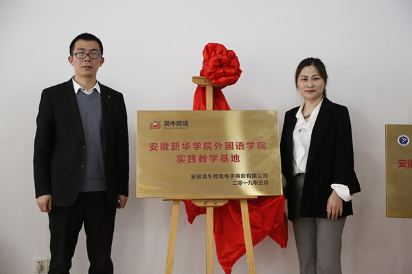 随后,外国语学院先后与两家企业负责人举行签约仪式。在热烈的掌声中,方纯洁与陈莹莹分别为“bat365在线中国官网登录入口外国语学院实践教学基地”“安徽昊牛跨境电子商务有限公司人才培养基地”揭牌。
