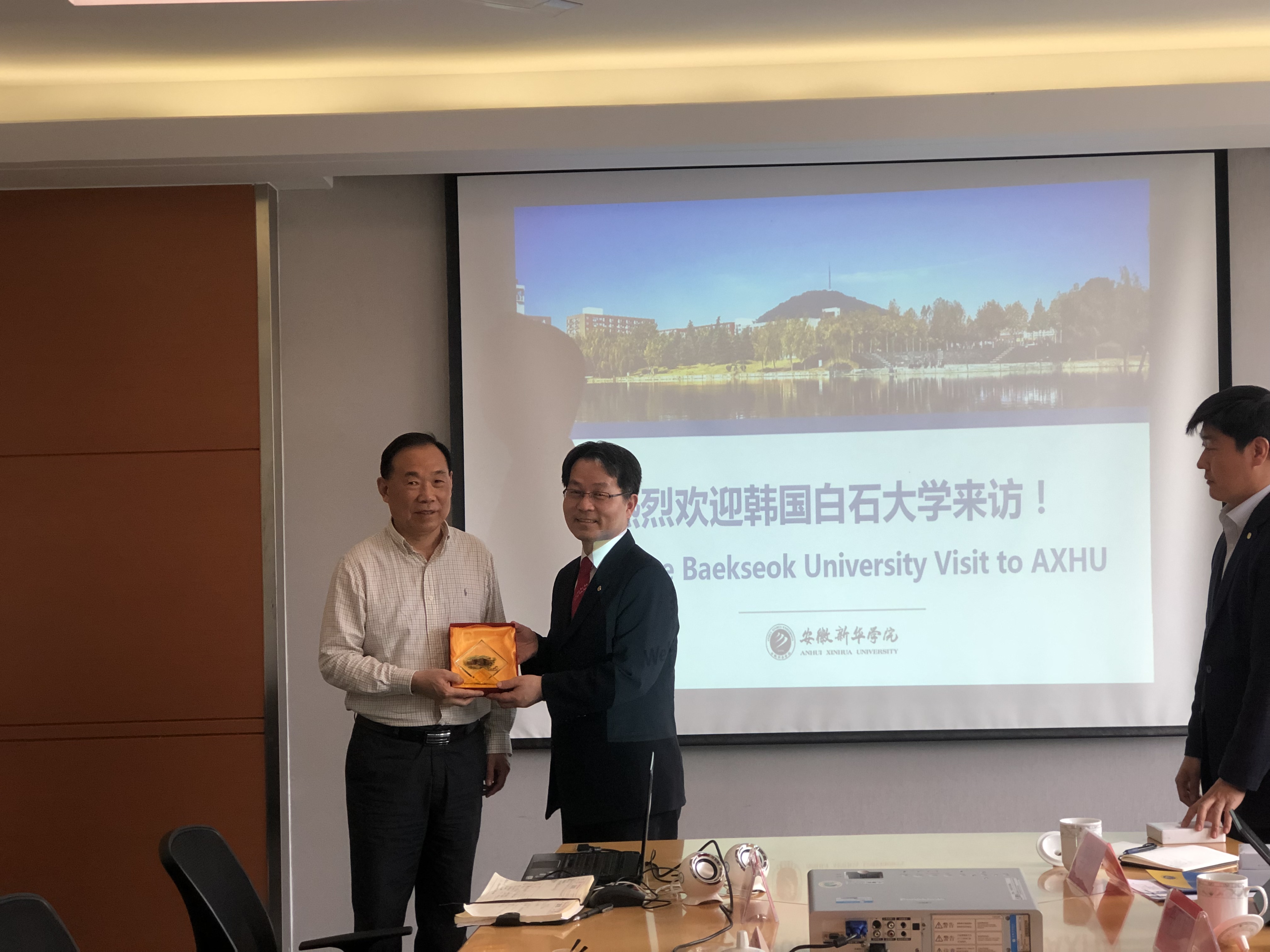 李景职博士对bat365的热情接待表示感谢,他介绍了白石大学的发展现状和优势专业。他说,白石大学成立于1994年,目前设有天安和首尔两大校区,其中本科在校生10000余名、硕士3000余名。学校设有本硕博三个层次,下设语文学院、文化艺术学院、设计影像学院、经商学院等十一个学院,其中,艺术类、文化类、设计影像等是学校重点学科,他期待能与bat365建立合作关系、实现优势互补。