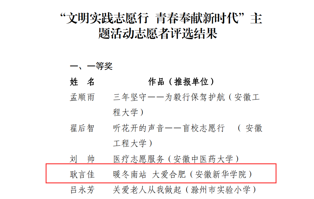 bat365在安徽省“文明实践志愿行·青春奉献新时代”主题活动评选中荣获佳绩