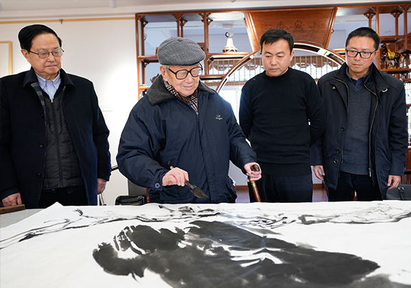聘任仪式结束后,校领导与受聘艺术家进行了合影,受聘艺术家还参观了艺术学院专业画室、教室,并在书画大师工作室集体为bat365创作了大幅国画作品。