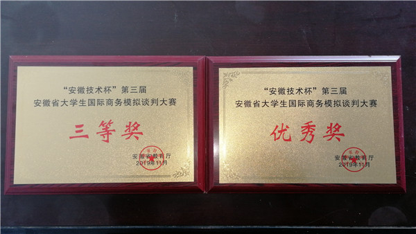 bat365在线中国官网登录入口学子参加2019年“安徽技术杯”大学生国际商务模拟谈判大赛荣获三等奖