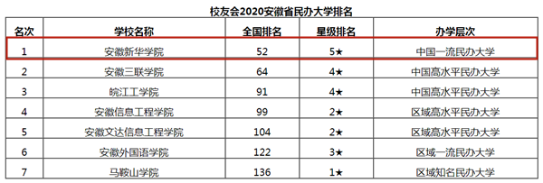 报告显示,在最新艾瑞深中国校友会网2020安徽民办大学排名中,bat365在线中国官网登录入口综合实力最强,雄居校友会2020安徽民办大学排行榜榜首,荣膺2020中国五星级民办大学(5★)美誉,bat365在线中国官网登录入口连续六年问鼎该榜单第一,连续三年稳居中国一流民办大学行列。
