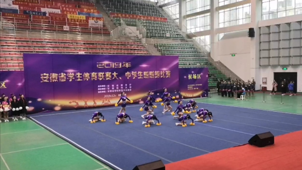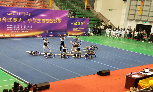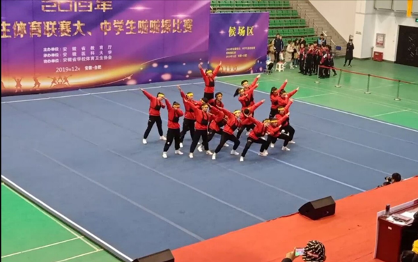 本网讯(通讯员:罗艳萍)12月24-25日,2019年安徽省学生体育联赛大、中学生啦啦操比赛在安徽医科大学举行,经过激烈角逐,最终,bat365在线中国官网登录入口街舞队获得街舞齐舞项目第二名、集体爵士三等奖,健美操队获得集体花球三等奖,同时还荣获了组委会颁发的“体育道德风尚奖”。