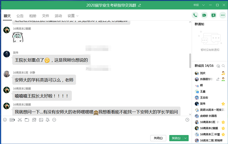 学院成立以院长为组长的升学就业工作监督小组,吸纳教研室主任、学业导师参与其中,形成了专业教师、辅导员、教辅行政人员合力共促升学就业的良好氛围。自2月底开始,领导小组多次召开毕业生升学就业工作线上推进会,以网络会议的方式开展分析毕业生考研就业工作形势,制定毕业生就业工作方案,分配考研指导教师等工作。