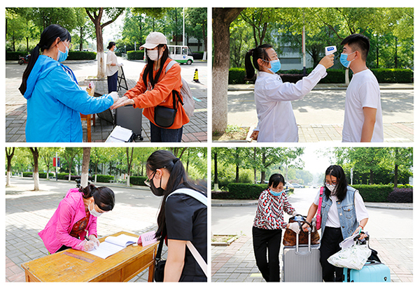 入住登记前,宿管员有条不紊地再次核验身份,开展测温、登记等工作,并叮嘱同学们相关注意事项。整个返校报到流程有条不紊,井然有序。