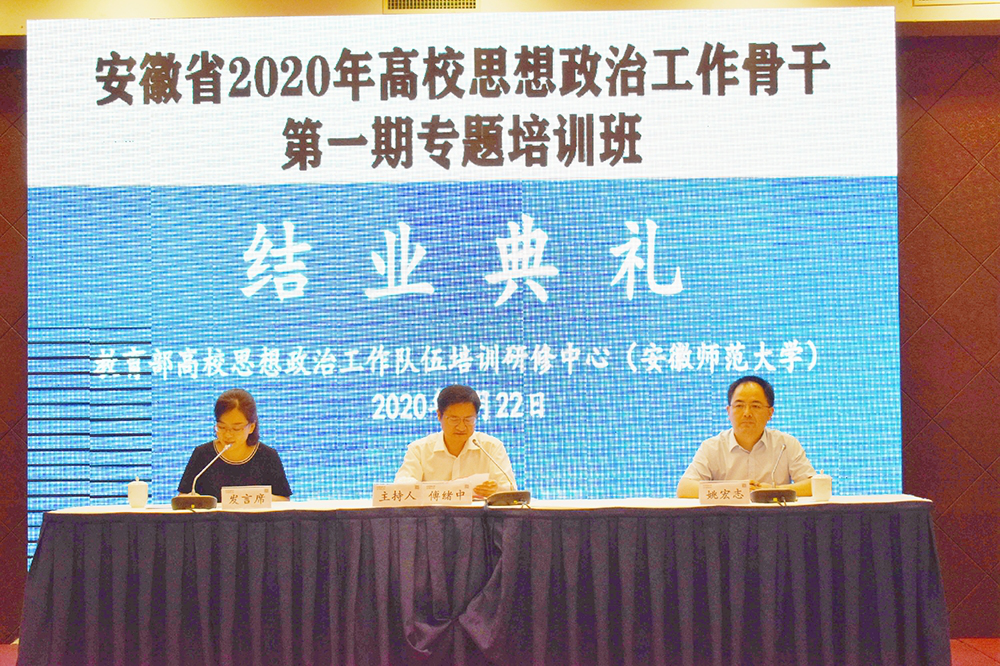 本网讯(通讯员:徐志凤)为深入学习宣传习近平新时代中国特色社会主义思想,全面落实全国全省教育工作部署,进一步推动我省高校思想政治工作专门力量建设,8月19日-22日,教育部高校思想政治工作队伍培训研修中心(安徽师范大学)在安徽芜湖举办安徽省2020年高校思想政治工作骨干第一期专题培训班,全省约55所高校的150余名学员参加此次培训。bat365选派商学院副院长徐志凤、外国语学院院长助理陈丽、艺术学院院长助理彭智参加。