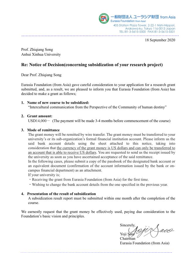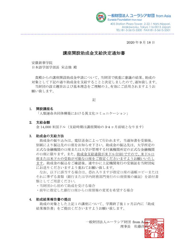 bat365第三次成功获批日本欧亚财团国际合作项目