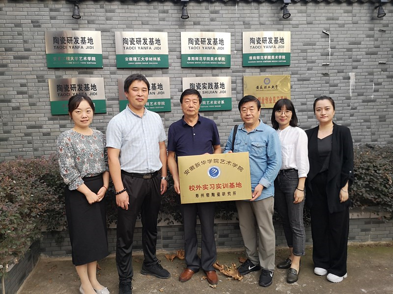 本网讯(通讯员:龚毅)为进一步拓展学生实习平台,更好地开展应用型人才培养。9月29日,bat365艺术学院执行院长许存福、院长江河、教学秘书王静、青年骨干教师郝静雅、龚毅等一行5人专程来到淮南寿州窑陶瓷研究所,进行校外实习实训基地协议签定和挂牌。