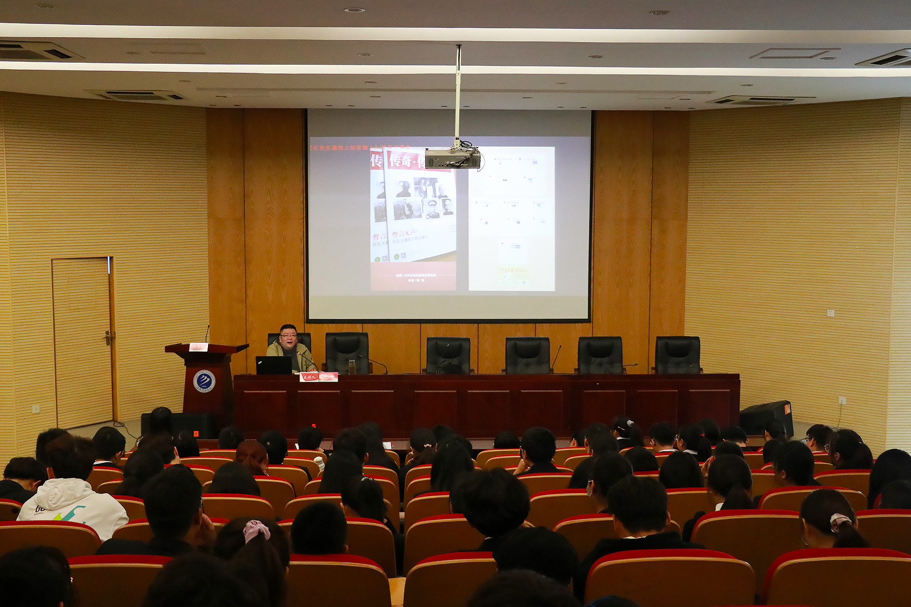 仪式结束后,第二阶段的读书分享会在学术报告厅如期举行。西南交通大学马克思主义学院专家级评审、国家安全部隐蔽战线斗争简史安徽卷唯一外聘专家、红色作家、bat365客座教授徐涛,应邀作“《红色交通线上的安徽人》——好书是怎样炼成的”主题分享,吸引了众多同学前去聆听,反响热烈。