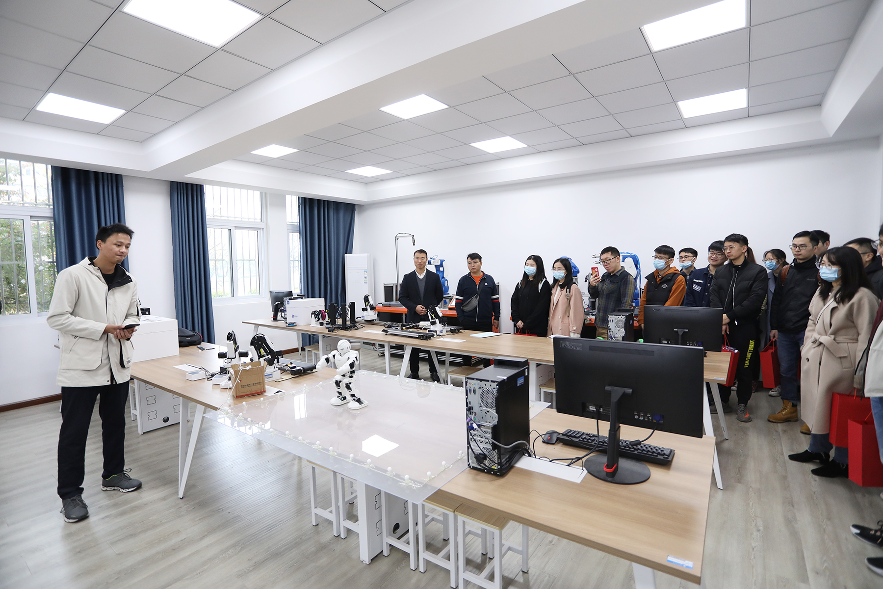 紧接着,在工作人员的精心安排下,博士们乘坐观光车游览了校园环境并实地探访了各学院教学区域、实验实训中心,深入了解学院学科建设、人才培养、教学科研等方面信息。
