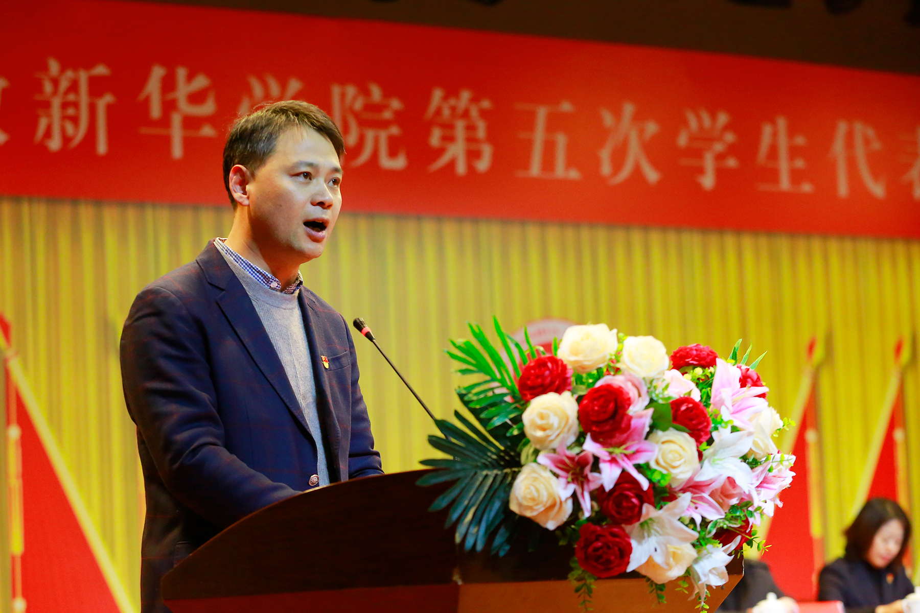 开幕式在国歌中拉开帷幕。汪俊东致开幕词,向长期以来一直关心、指导bat365学生会工作的各位领导和来宾致以崇高的敬意和热烈的欢迎,并介绍了大会召开的意义、主要任务以及代表产生等相关情况。他号召全体学生以国家富强、人民幸福为己任,胸怀理想、志存高远,用青春书写无愧于时代、无愧于历史的华彩篇章,唱响“奋斗青春最美丽”的新时代青春之歌。