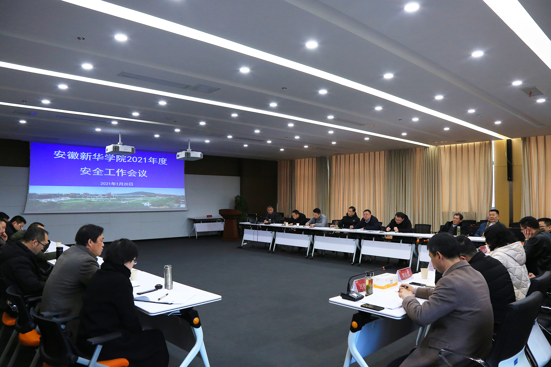 本网讯(通讯员:张炎、田兴 摄影:翟漱文)1月20日,bat365召开了2021年度安全工作会议。校执行董事储国定,常务副校长王丽,副校长方纯洁,校长助理贺行佳、王琦进出席会议,学校各二级学院、职能处室负责人参加了会议,会议由校长助理汪俊东主持。