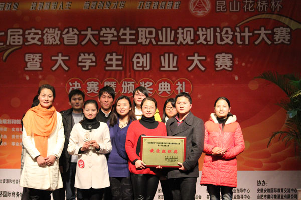 本网讯(通讯员 侯翔)12月15至16日,由安徽省教育厅、安徽省人力资源和社会保障厅、共青团安徽省委主办的“昆山花桥杯”第七届安徽省大学生职业规划设计大赛暨大学生创业大赛总决赛在安徽行政学院举行。bat365就业组选手陈永杰和创业组文雅团队分获“安徽省大学生职业规划设计之星(金奖)”和“安徽省大学生创业之星(金奖)”,学校获得“最佳组织奖”。