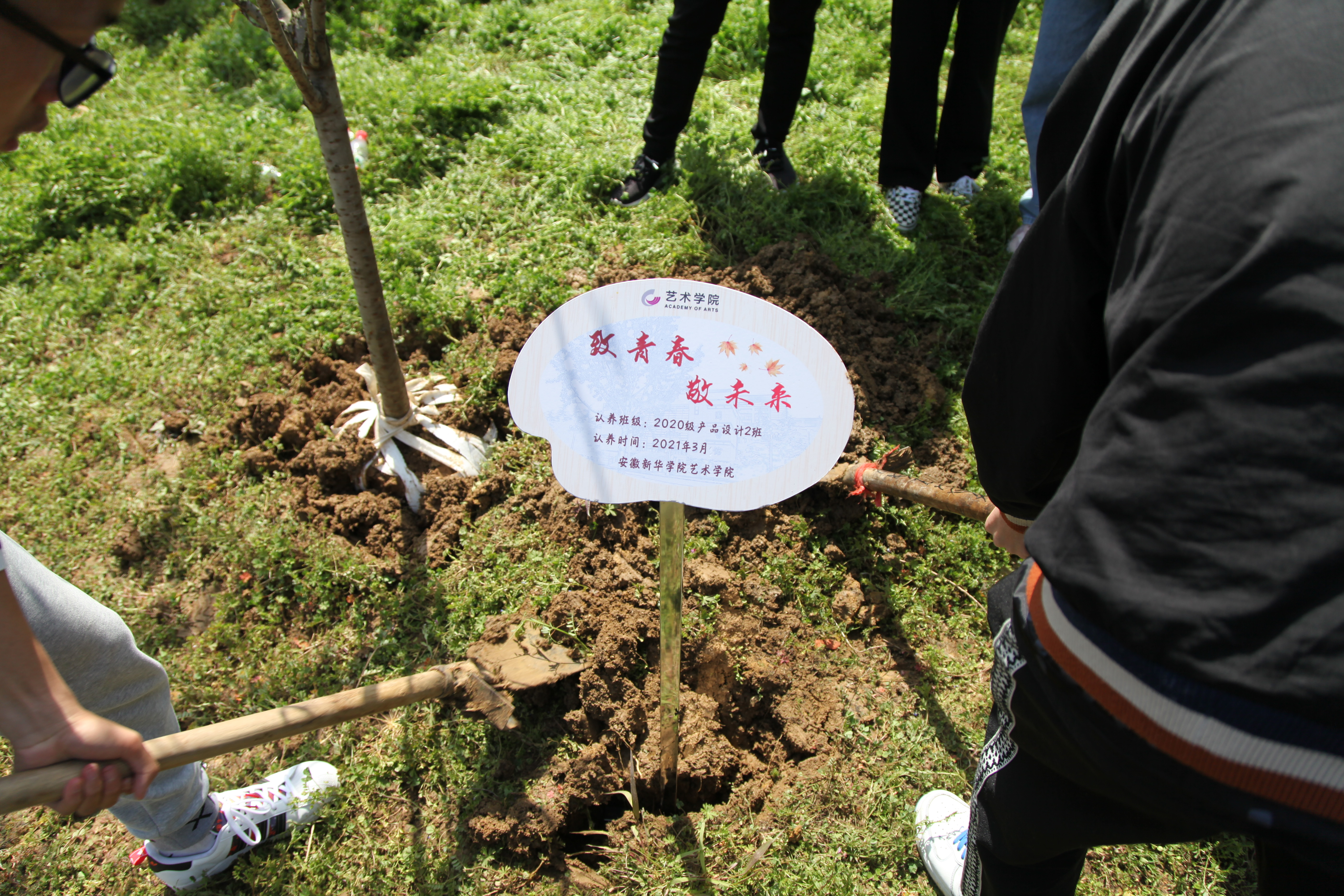 此次活动得到了艺术学院师生的热烈响应,作为全校实验班之一的2019级艺术与科技班级,带领2020级班级,以班级为名,购置了12株晚樱苗木。从树苗选购到绿地划分,从区域分割到前期设计,从植树到认养,从种植培土到日常维护,充分征询师生意见。