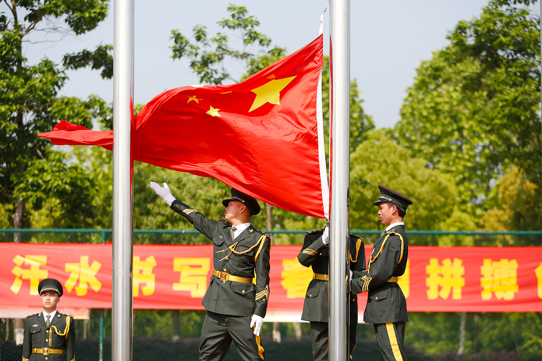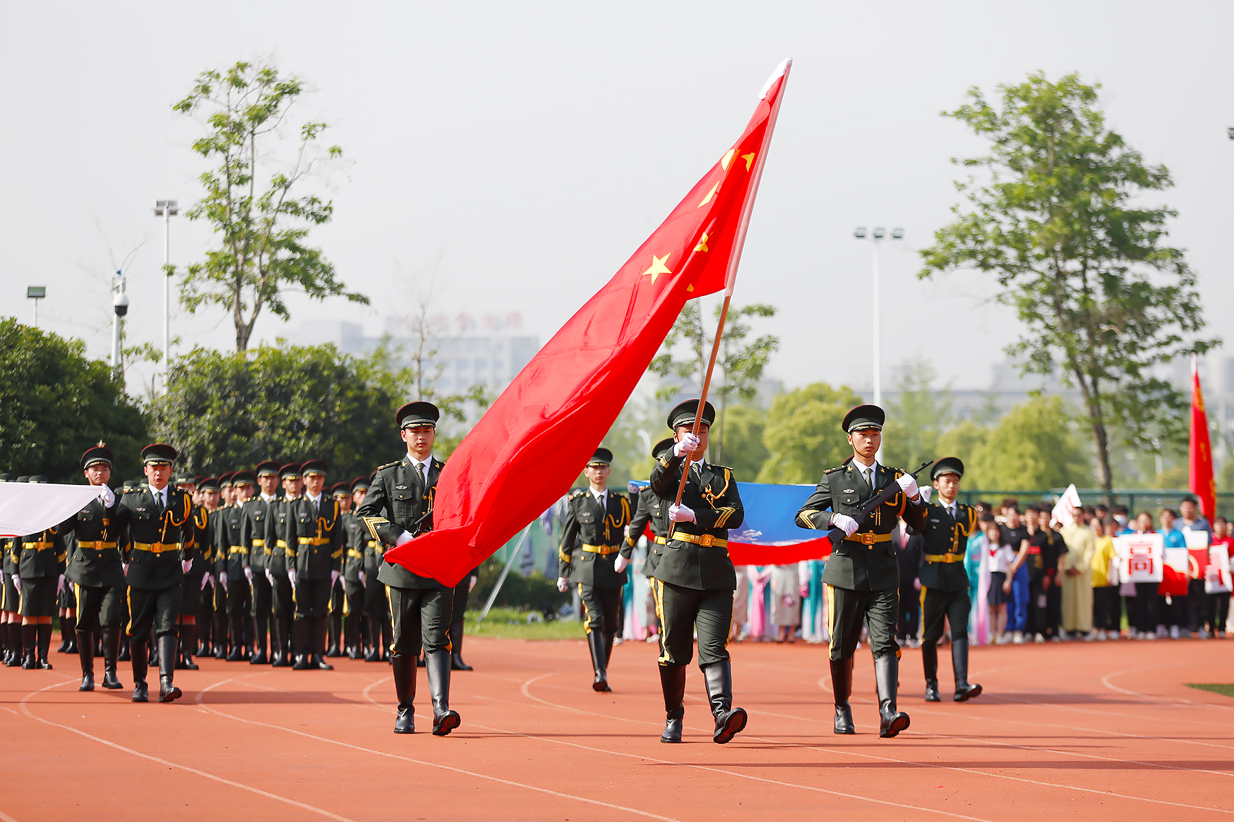 鲜艳的国旗,传承着炎黄的血脉。伴随着激情澎湃的运动员进行曲,气宇轩昂的护旗队最先入场,国旗、校旗和会旗,引领着青年学子团结拼搏,勇创佳绩。