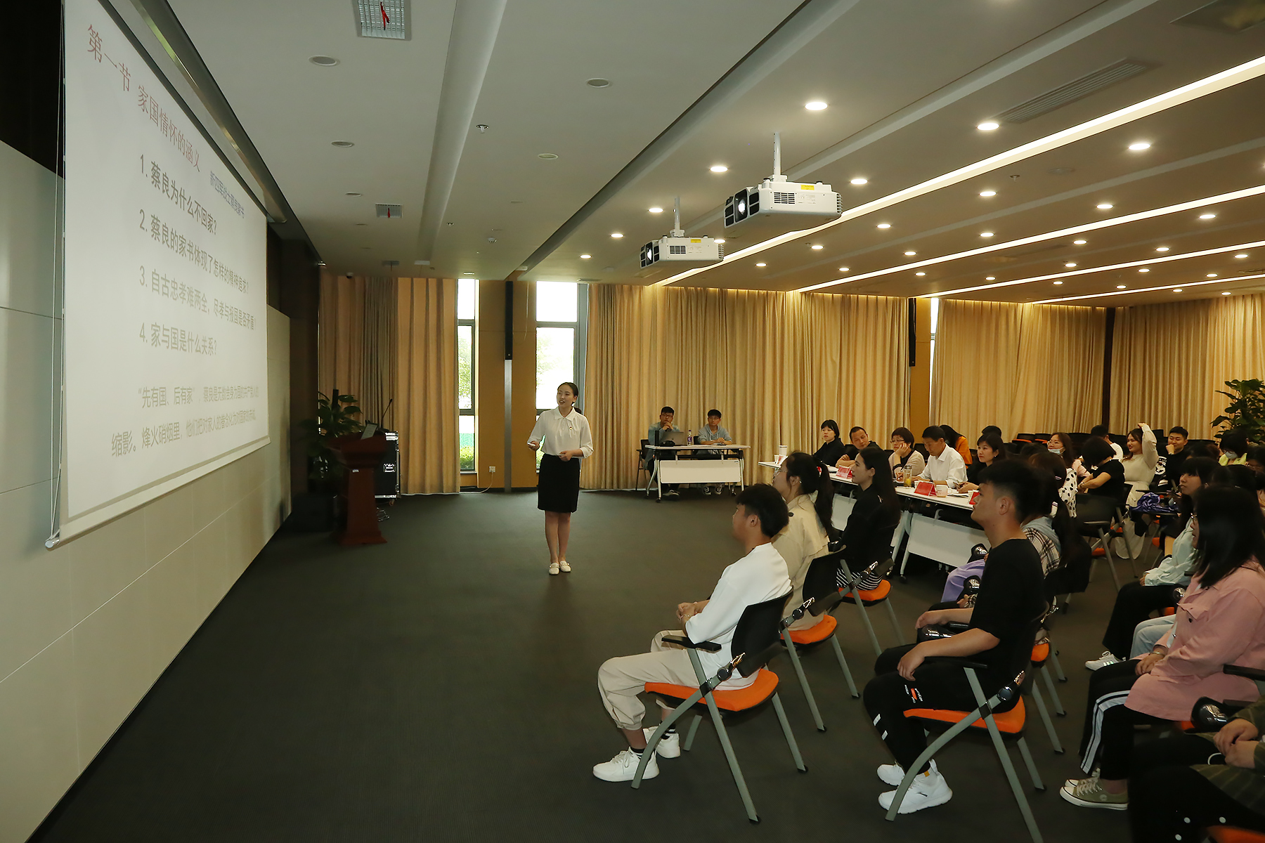 决赛则通过使用辅导员与学生面对面现场组织实施的形式,于5月7日在科研楼一楼多媒体室进行。现场邀请校长助理邵玲、辅导员发展研究中心主任朱平、通识教育部主任王士赵、校友工作办公室副主任芮萍、宣传处处长助理万媛媛、学校办公室主任助理杨雨婷担任比赛评委,全体学工人员观摩。