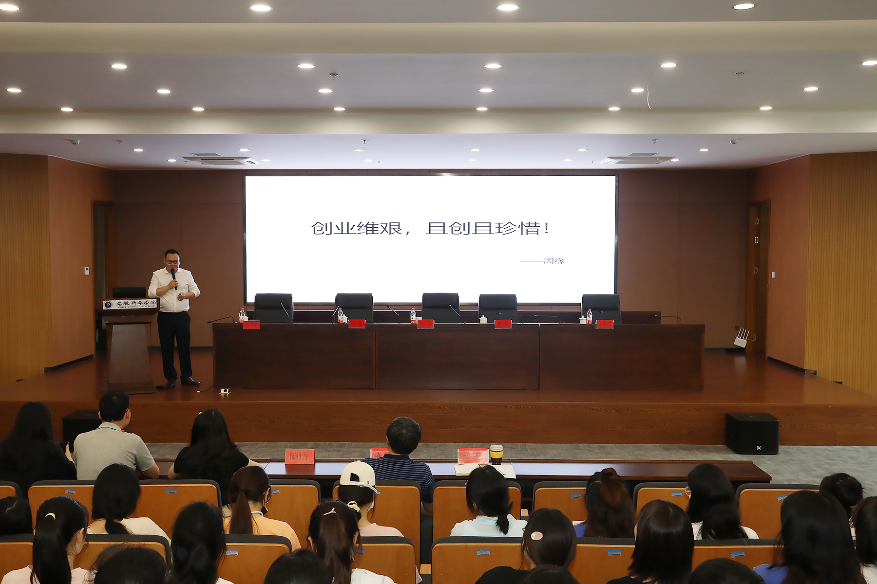 活动第二阶段,由周缘作为创新创业导师开讲第一课。他表示,很荣幸受聘为母校校外创新创业导师,未来会尽自己所能为学弟学妹们的在校外实习、就业创业等方面提供更多的机会和平台。本次授课,周缘从自己的学习之路、创业之路、感悟寄语等方面,讲述自己如何从职场“小白”一路“打怪兽”到企业精英。他希望学弟学妹们珍惜在校时光,打牢专业基础,未来可以更好地实现自己的价值和梦想。活动的最后,还有精彩的英语互动对话,将活动气氛一度推向高潮。