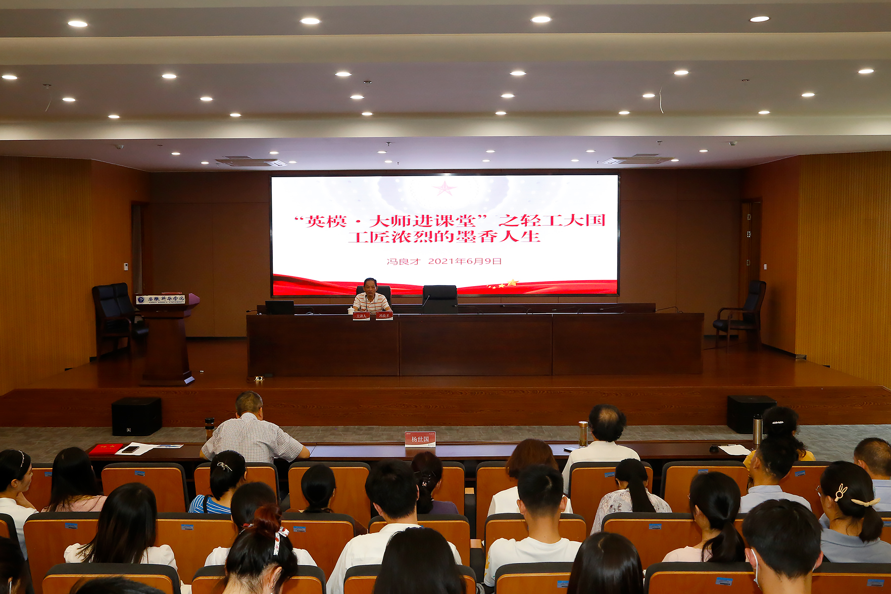 马克思主义学院何小刚院长主持报告会,他强调,广大师生要向以冯良才先生为代表的大国工匠学习,将执着专注、一丝不苟、精益求精、不断创新、追求卓越的工匠精神践行到日常学习工作中,坚定理想信念、脚踏实地,潜心钻研,传承传统,要学习英模、崇尚英模、争当英模,努力塑造出自己的工匠人生,在奋进新征程的道路上以优异成绩庆祝建党100周年。