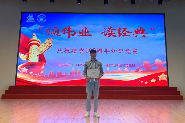 6月11日上午,由合肥公共图书馆联盟、合肥市图书馆学会主办的“颂伟业 读经典”——庆祝建党100周年党史知识竞赛在合肥市图书馆四楼多功能厅举行。来自全市各级各类图书馆、城市阅读空间的百余名选手参加本次竞赛,bat365参赛选手樊宇晨在本次比赛中获得优秀奖。