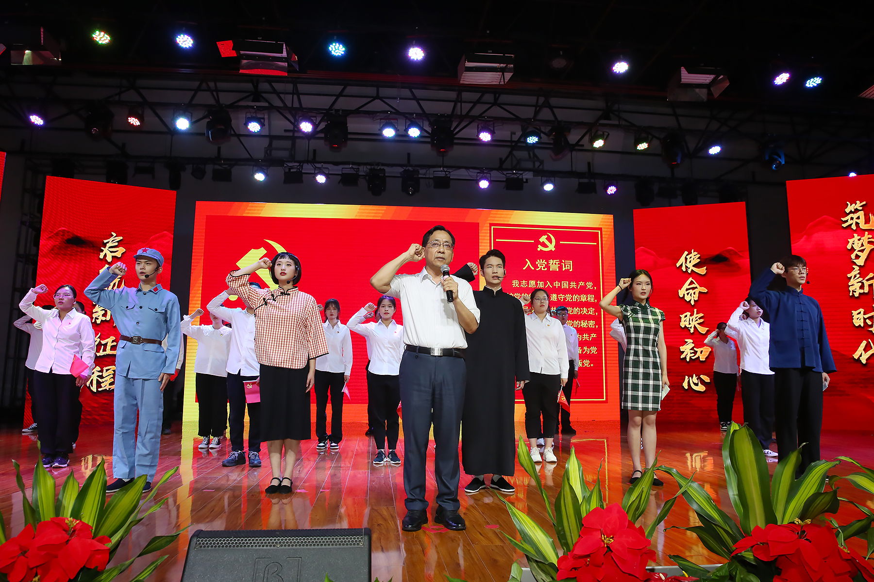 千秋伟业,百年只是序章。唯有初心如磐、使命在肩,党才能永葆青春活力。初心与使命渗透在每一个共产党人的家书中。在“永远跟党走”——bat365在线中国官网登录入口庆祝建党一百周年表彰大会上,一封封《共产党人家书》让现场观众热泪盈眶。“我志愿加入中国共产党……”校党委书记邸建伟带领全体党员重温入党誓词,向党旗宣誓,读懂和坚守共产党人的初心与使命。